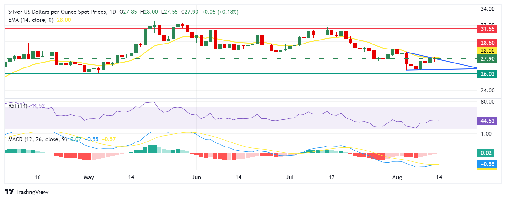 白银价格预测:白银/美元测试14天EMA均缐28美元
