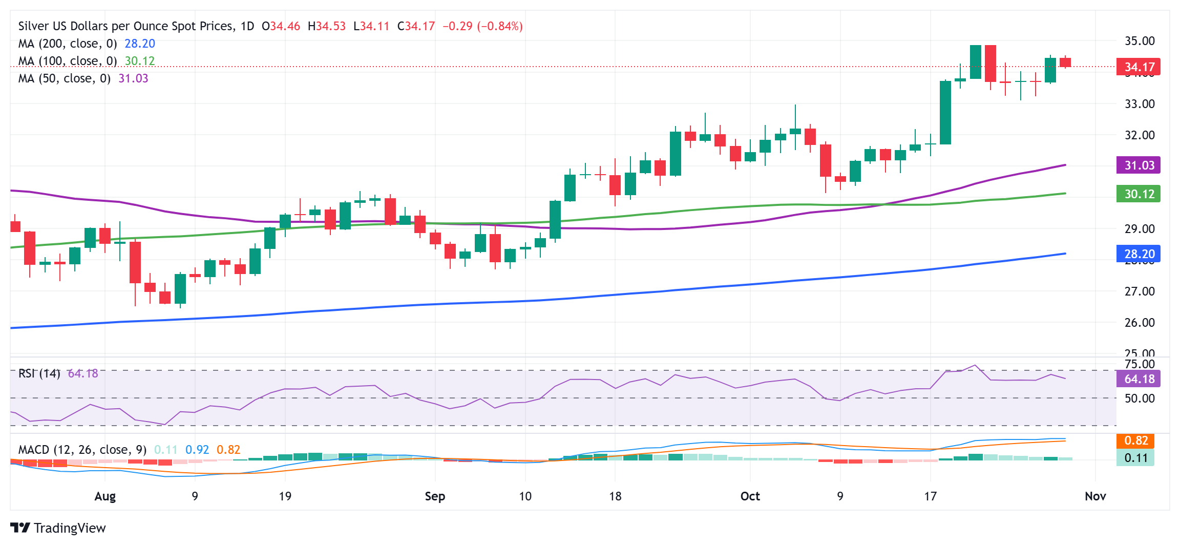 白银价格预测:白银/美元在34.00美元上方小幅震盪,看涨偏向依然存在