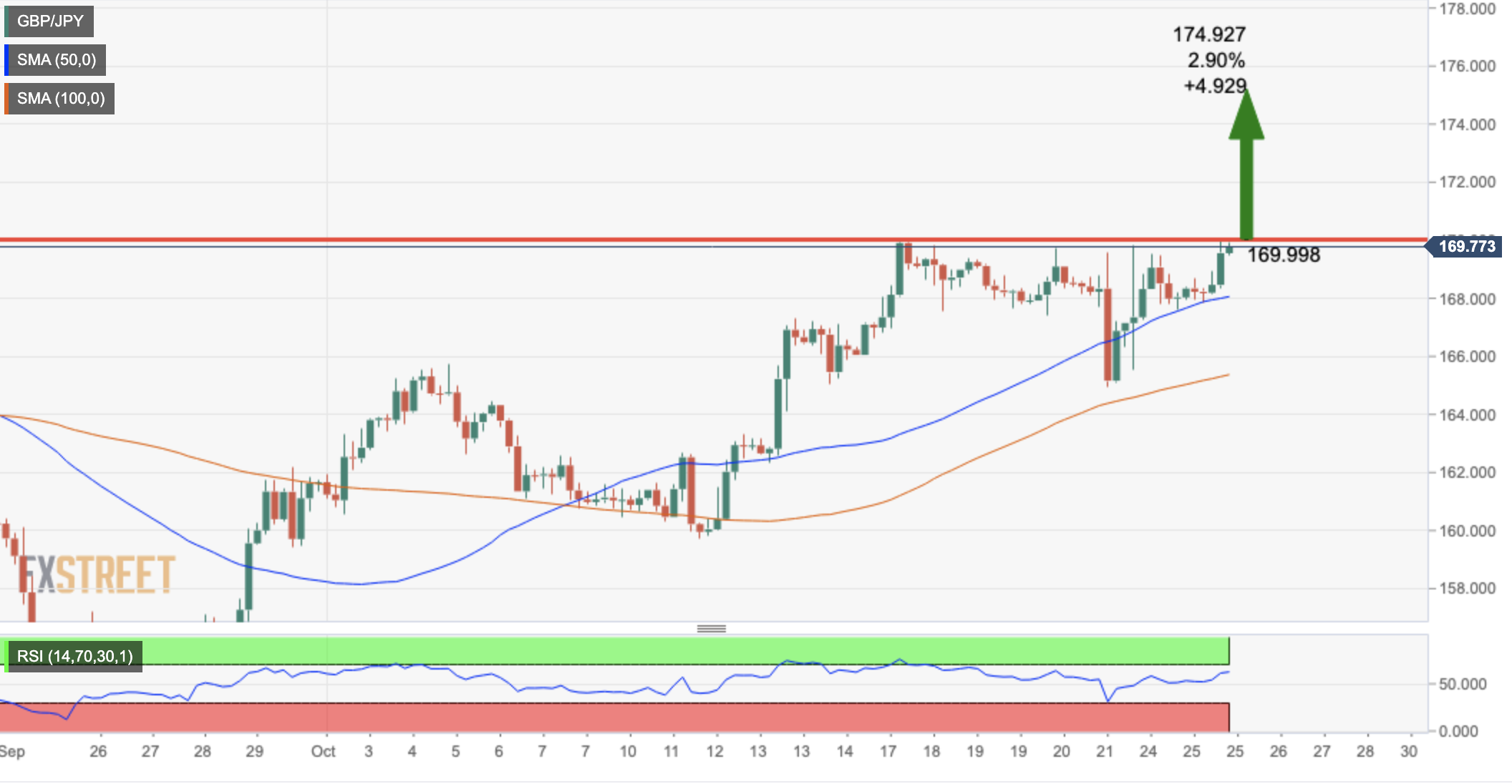 - 若英镑/日元突破170.00可能会上涨至175.00。