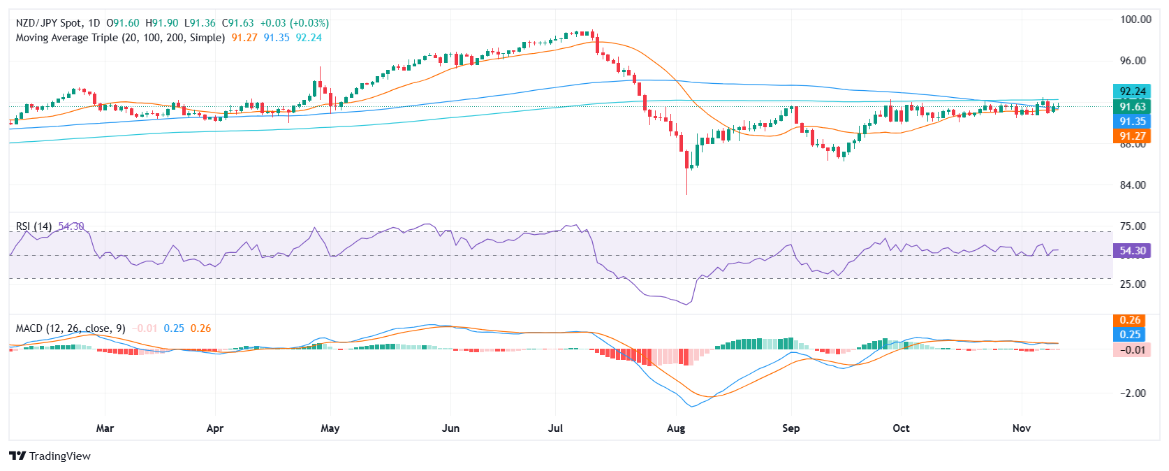 - 周二纽元/日元盘中上扬,温和上涨至 91.65。