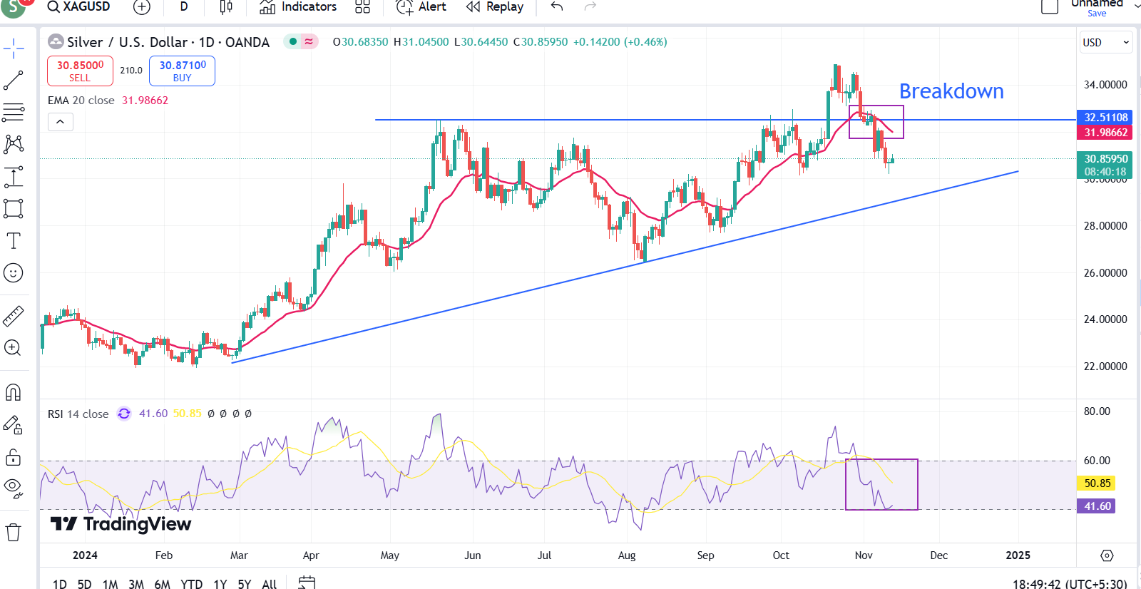 在所谓的 "特朗普交易 "中,白银价格的整体前景依然疲软,因為市场对那些预计在美国当选总统唐纳德-特朗普政府中表现较好的资产的需求是乐观的。