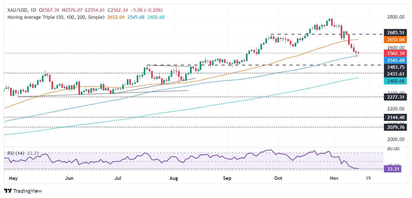 黄金/美元技术前景:黄金价格仍看跌;空头指向2,550美元