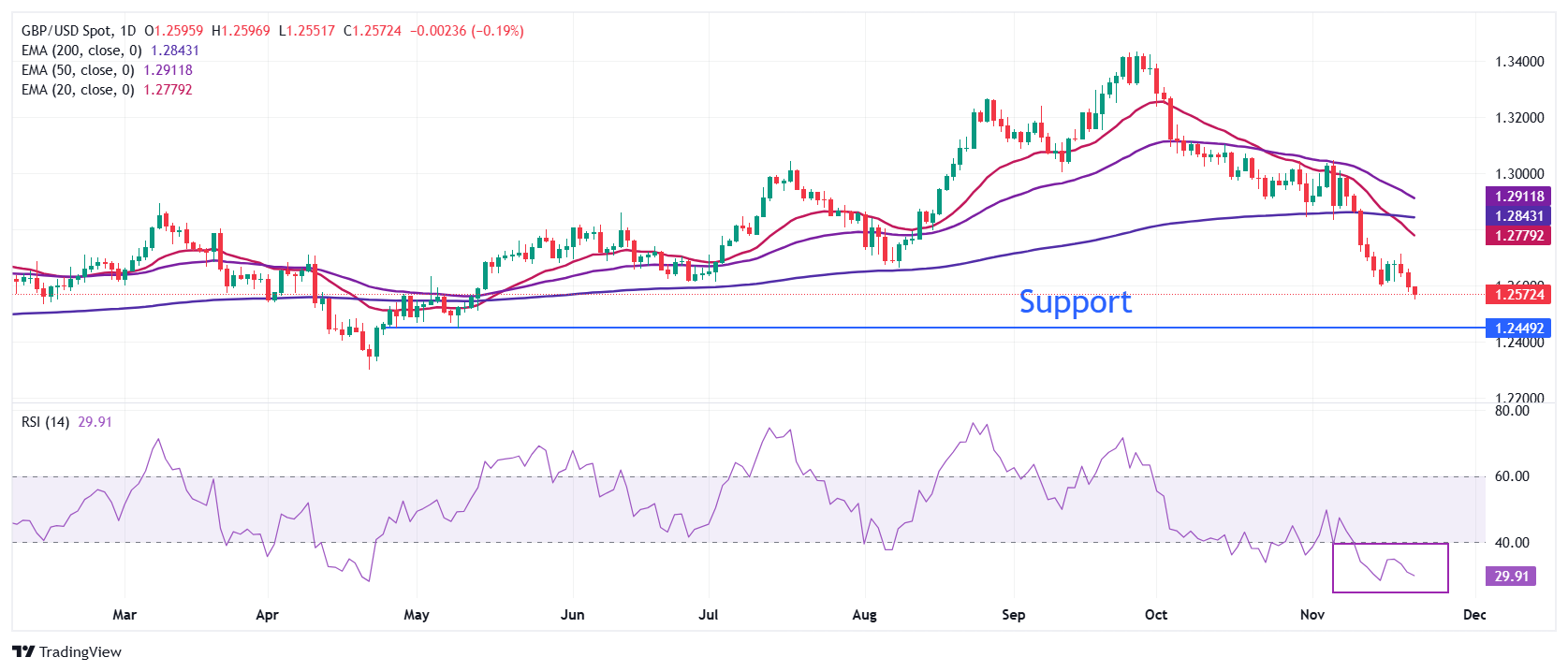 技术分析:英镑在 1.2550 附近或迎来更多下行空间