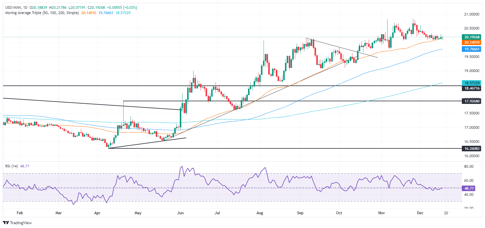 美元/墨西哥比索技术展望:墨西哥比索在50日简单移动均缐附近保持稳定