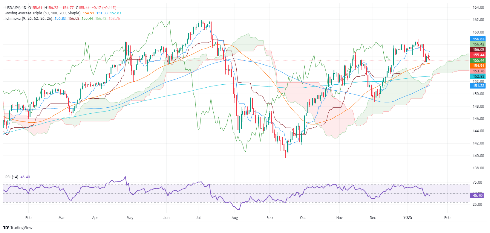 另一方面,如果美元/日元突破156.41的Senkou-span A,可能会测试157.00。如果突破,可能会跳升至1月15日高点158.03。