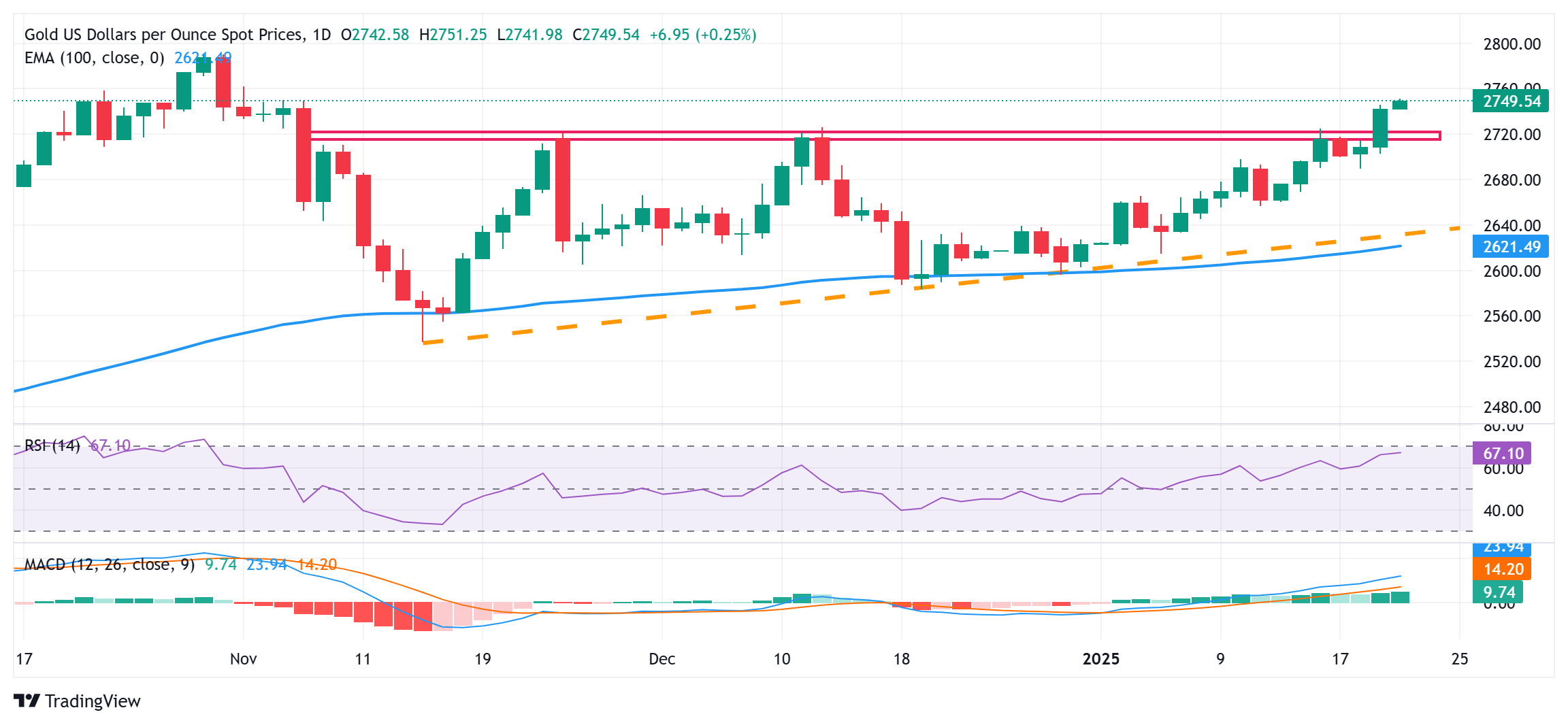 从技术角度看,隔夜突破2720美元供应区被视為看涨交易者的新触发点。鉴于日缐图上的振盪指标在积极区域内舒适持有,并且仍远未进入超𧹒区间,突破2748-2750美元障碍后的后续强势应為进一步上涨铺平道路。金价可能会瞄准挑𢧐2024年10月触及的2790美元区域的历史高点。