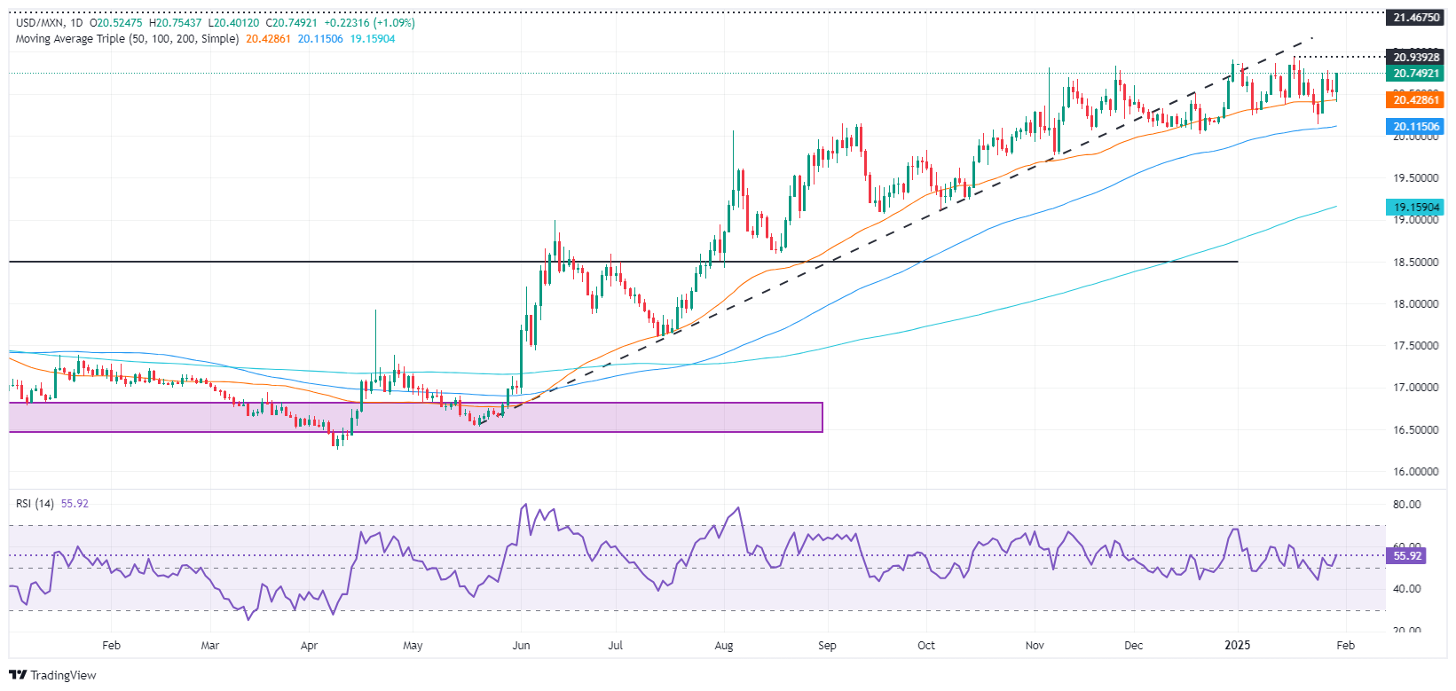 在头条新闻发布后,USD/MXN飙升至20.70以上,并触及日高20.74。自那以后,这对外汇组合已趋于稳定。