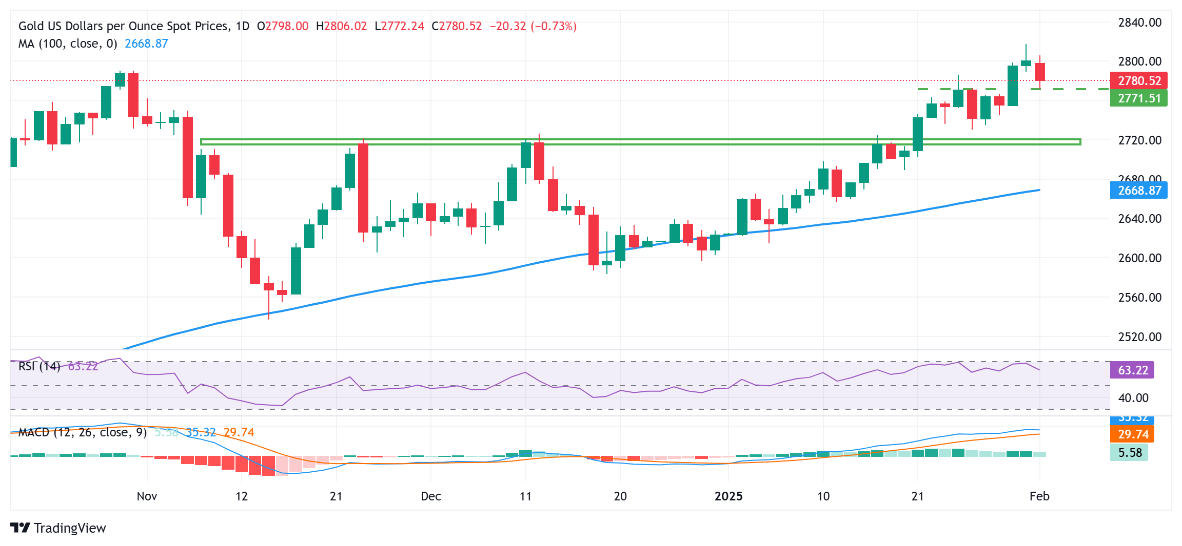 与此同时,美元(USD)因特朗普决定对加拿大、墨西哥和中国征收关税而反弹至两年多来的高点。此外,随著价格上涨和消费者支出激增,市场猜测美联储(Fed)可能会推迟今年的降息,这可能会限制无收益黄金价格的涨幅。