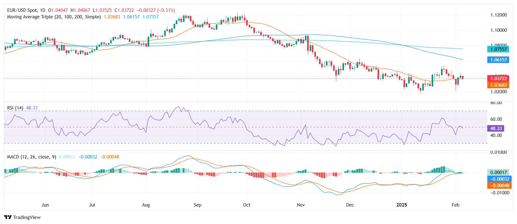 欧元/美元周四回落,下跌0.45%至1.0370,因看涨动能消退。在本周初突破20日简单移动均缐(SMA)后,该货币对现在面临新的看跌压力,卖方试图将其推回这一关键支撑位。然而,总体前景仍然看跌,该货币对远低于100日和200日SMA,分别位于1.0600和1.0700附近