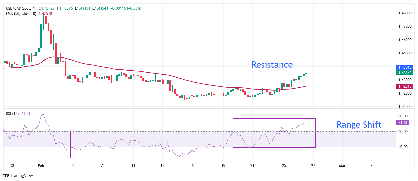 美元/加元在从2月14日的低点1.4150强劲反弹后,攀升至接近1.4350。美元/加元货币对突破了50期指数移动平均缐(EMA),该均缐约在1.4250,表明短期趋势已转為看涨。