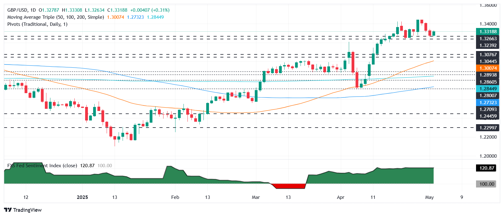 相反,如果英镑/美元跌破1.33,关键支撑位将被暴露。第一个支撑位将是1.3200,其次是1.3100和50日简单移动平均缐(SMA)在1.3004。