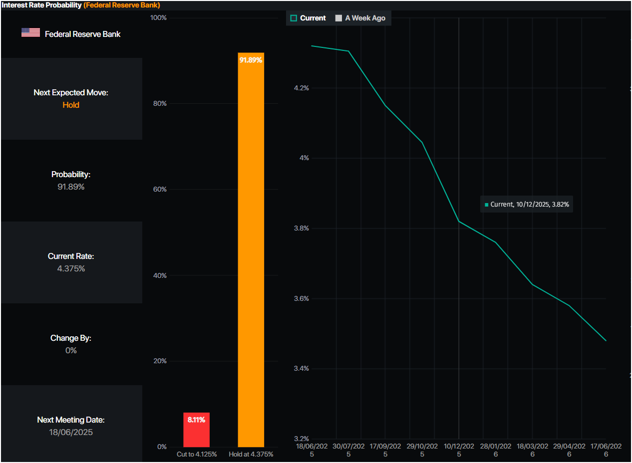 - 掉期市场目前已将美联储在7月会议上首次降息25个基点(bps)定价,并预计在年底前再降一次。