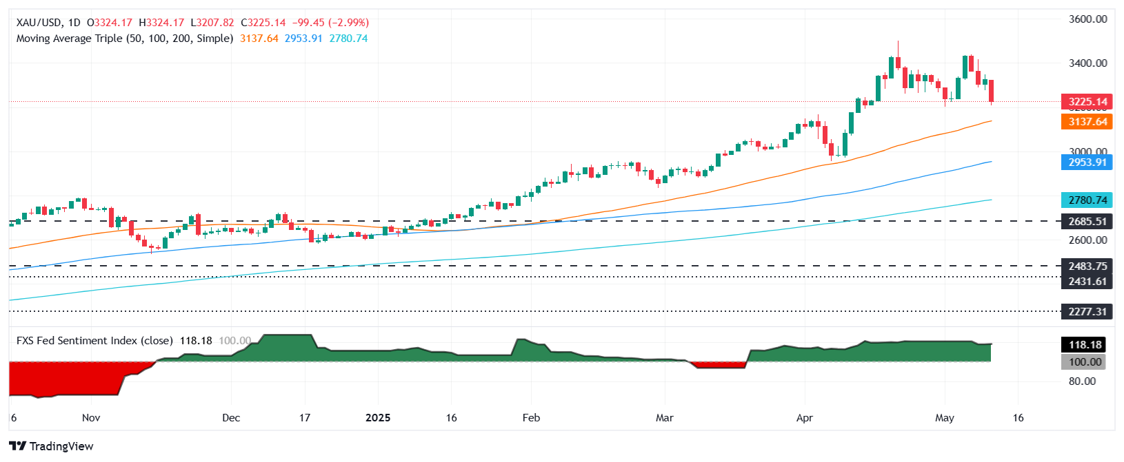 - XAU/USD暴跌超过3%,至$3,225,因风险情绪改善和DXY飙升对黄金施加了巨大压力。