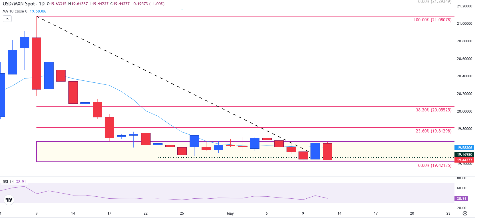 截至发稿时,美元/墨西哥比索徘徊在19.470附近,日内下跌1.00%,交易者在美联储官员的关键评论和定于周四的墨西哥央行(Banxico)政策决定前进行布局。