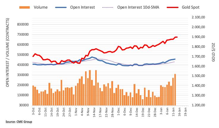 周四金价在未平仓合约和成交量增加的情况下延续了升势,表明短期内可能出现额外的涨幅。虽然如此,黄色金属暂时仍以每盎司2000美元的关键大关為目标。