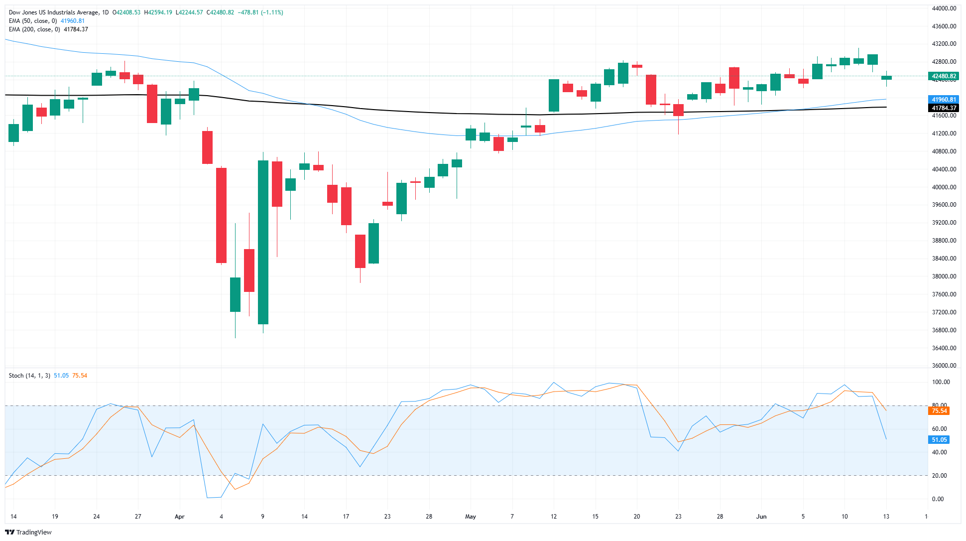 侭管短期内疲软,道琼斯仍在41,800附近的200日指数移动平均缐(EMA)之上交易,50日EMA正在完成与长期移动平均缐的看涨交叉,这意味著如果价格走势符合42,000区域的技术支撑,可能会出现新的上涨。