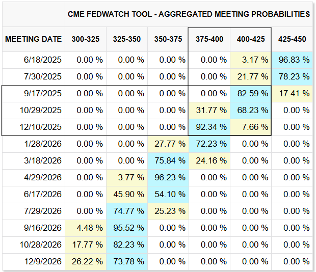 美联储(Fed)最新的利率决策将在下周公布。市场普遍预期美联储将保持观望态度,等待特朗普政府贸易政策的潜在影响。在本周的通胀数据好于预期后,利率市场预计9月份降息25个基点的概率约為70%,并预计10月份会有紧接著的降息,但更可能在12月份进行。