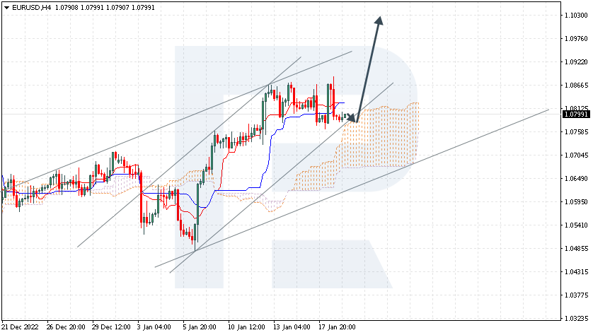 该货币对正测试支撑区域。汇价突破一目均衡图(Ichimoku Cloud),暗示处于上行趋势中。预计汇价将测试云图的上边界1.0780,然后上涨至1.1030。确认上涨的进一步信号将是反弹脱离看涨通道的下边界。若突破云图的下边界并维持在1.0635下方,该情形可以被取消,汇价将进一步下跌至1.0545。