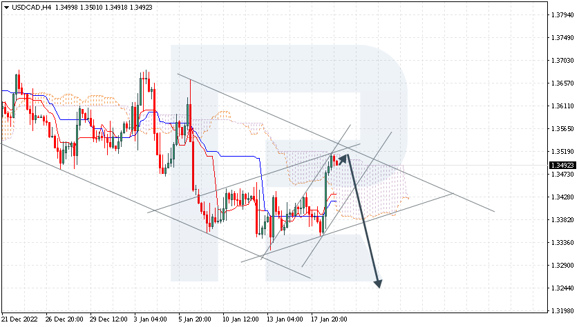 汇价在一个下降通道内调整。该货币对进入一目均衡图内,暗示持平。汇价料测试位于1.3505的云图上边界,然后下跌至1.3245。确认下跌的信号将是从下行通道的上边界反弹。如果突破了云图的上边界并锁定在1.3535上方,则可以抵消下跌,这将表明该货币对将进一步上涨至1.3625。当突破看涨通道的下边界并锁定在1.3225下方时,可以证实这一下跌。