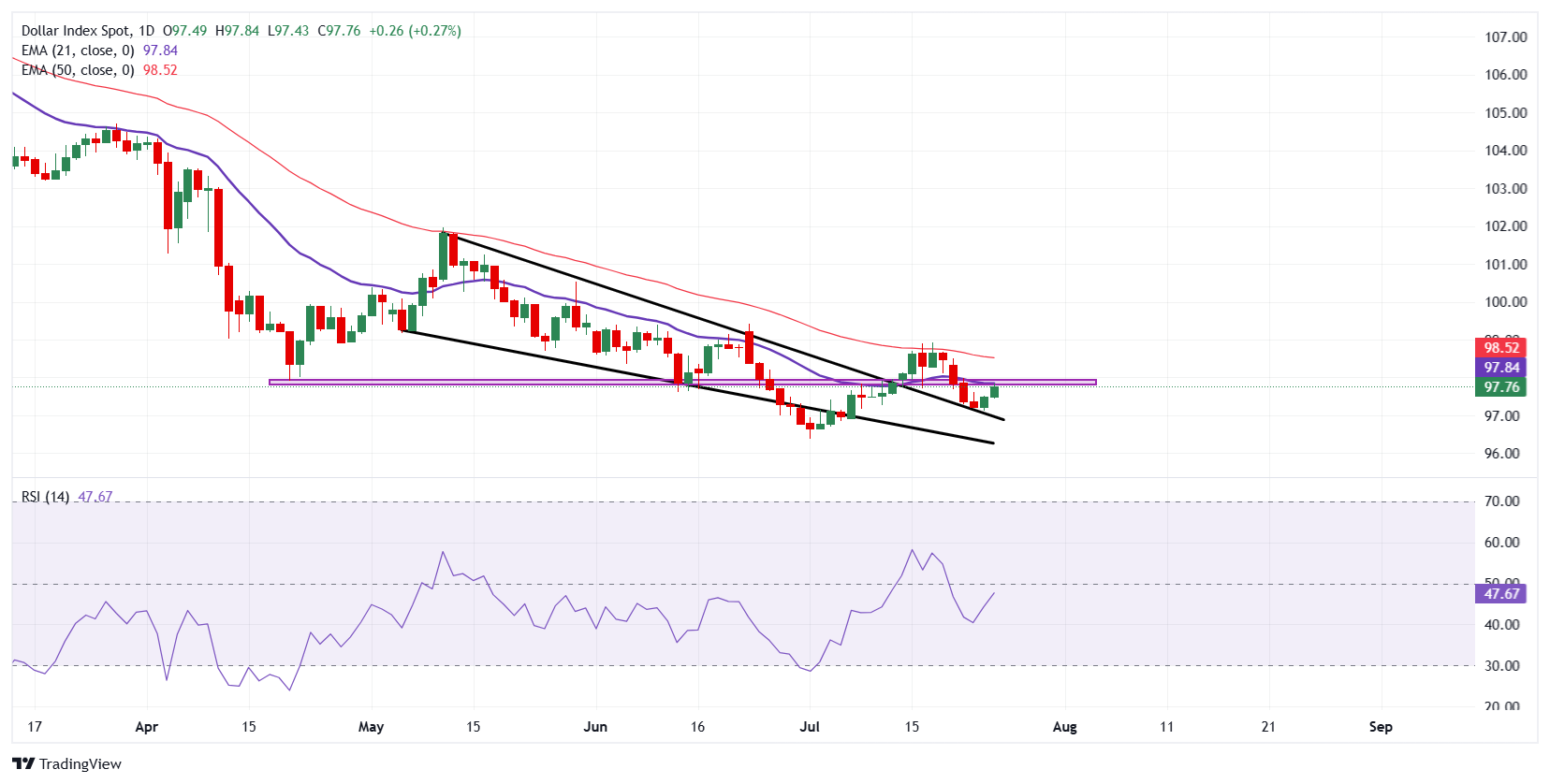 - DXY美元指数在97.00心理支撑位找到强劲支撑后,交易接近97.80。