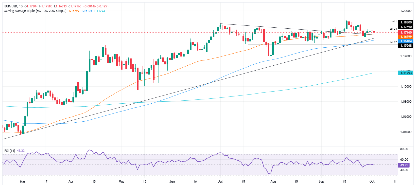 技术前景:欧元/美元在1.1710附近保持稳定,等待新的催化剂
