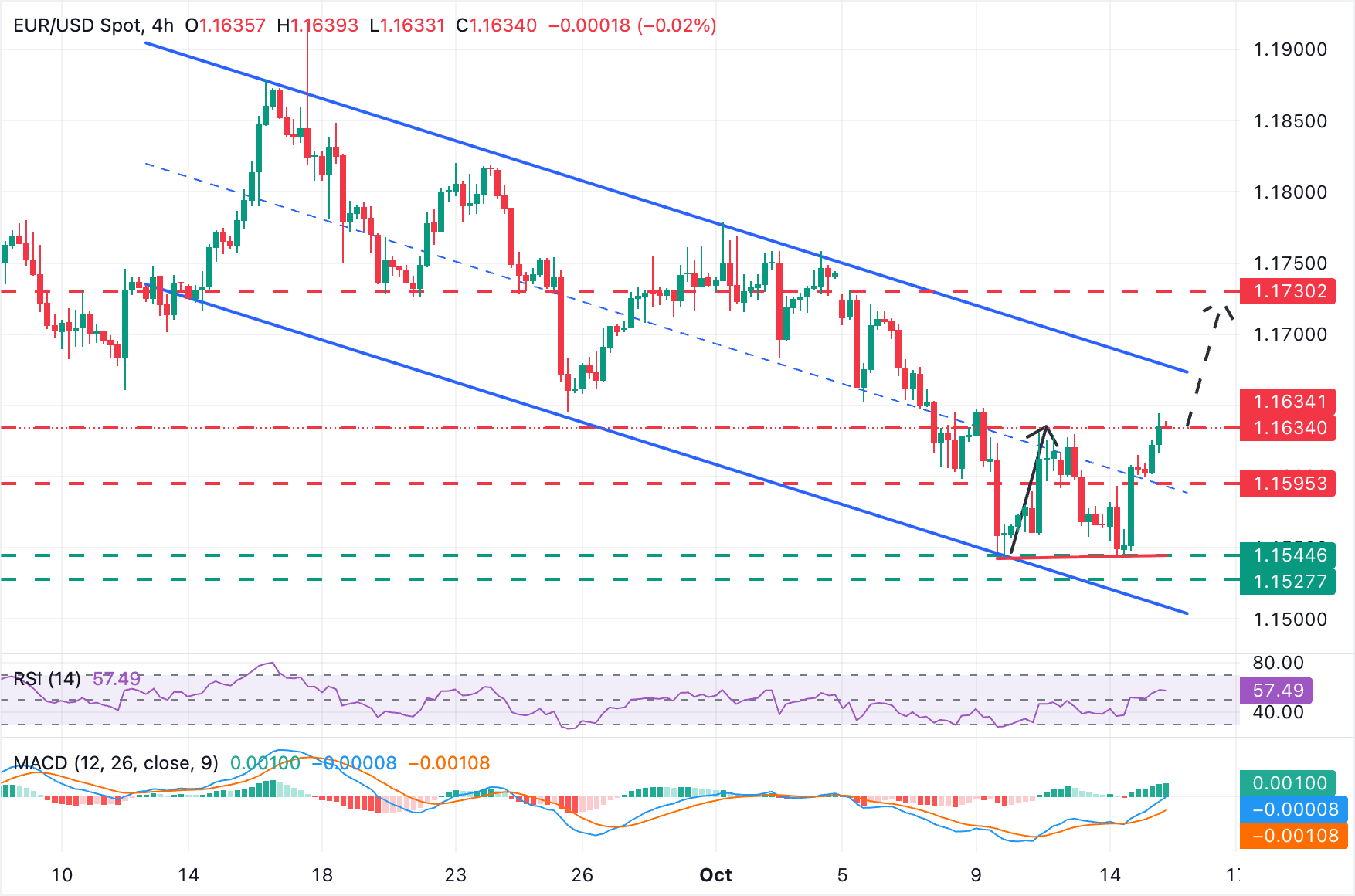 向下方面,日内低点1.1600保持了下行尝试,并关闭了通往关键1.1542水平(10月9日和14日低点)的路径。在此确认跌破将使空头重新掌控,并增加对8月5日低点1.1530和下降通道底部1.1515区域的压力。