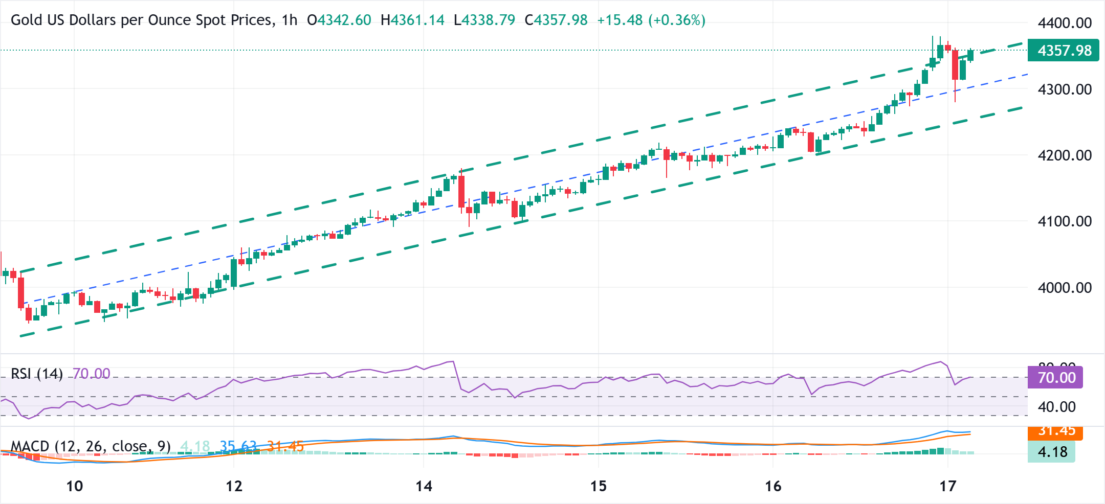 日相对强弱指数(RSI)仍远高于70。这可能促使XAU/USD的多头从市场上获利了结,并引发急剧回调。然而,任何跌破4300美元的修正性下跌可能仍会在亚洲时段低点附近找到一些支撑,约在4280-4279美元区域。然而,后续的抛售可能会将黄金价格拖向4235-4230美元区域,然后是隔夜低点,约在4200美元附近。后者应作為一个关键的转折点,如果被果断跌破,可能会為更深的损失铺平道路。