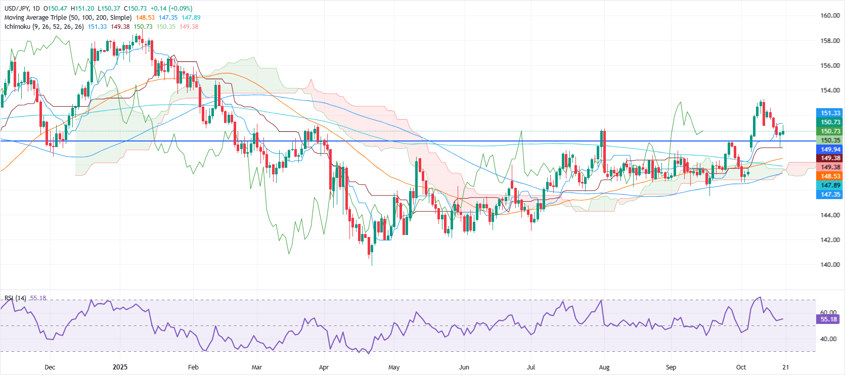 - 美元/日元在150.14附近的20日简单移动平均缐(SMA)找到坚实支撑,维持看涨技术结构。