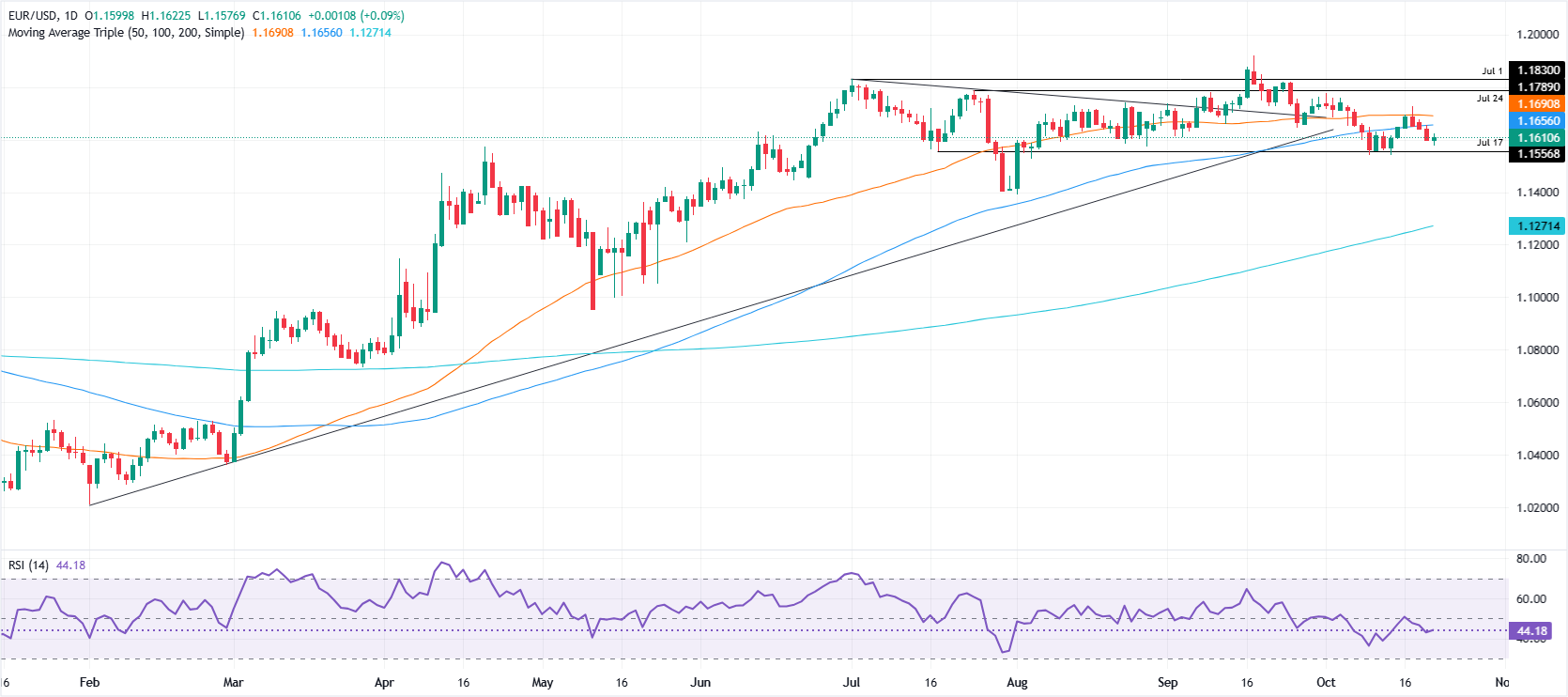 地缘政治主导著金融市场的叙事,因為美中贸易紧张局势依然高涨,而俄罗斯与乌克兰冲突缺乏解决方案则对欧元施加压力。普京与特朗普在布达佩斯的会晤取消限制了欧元的上涨。