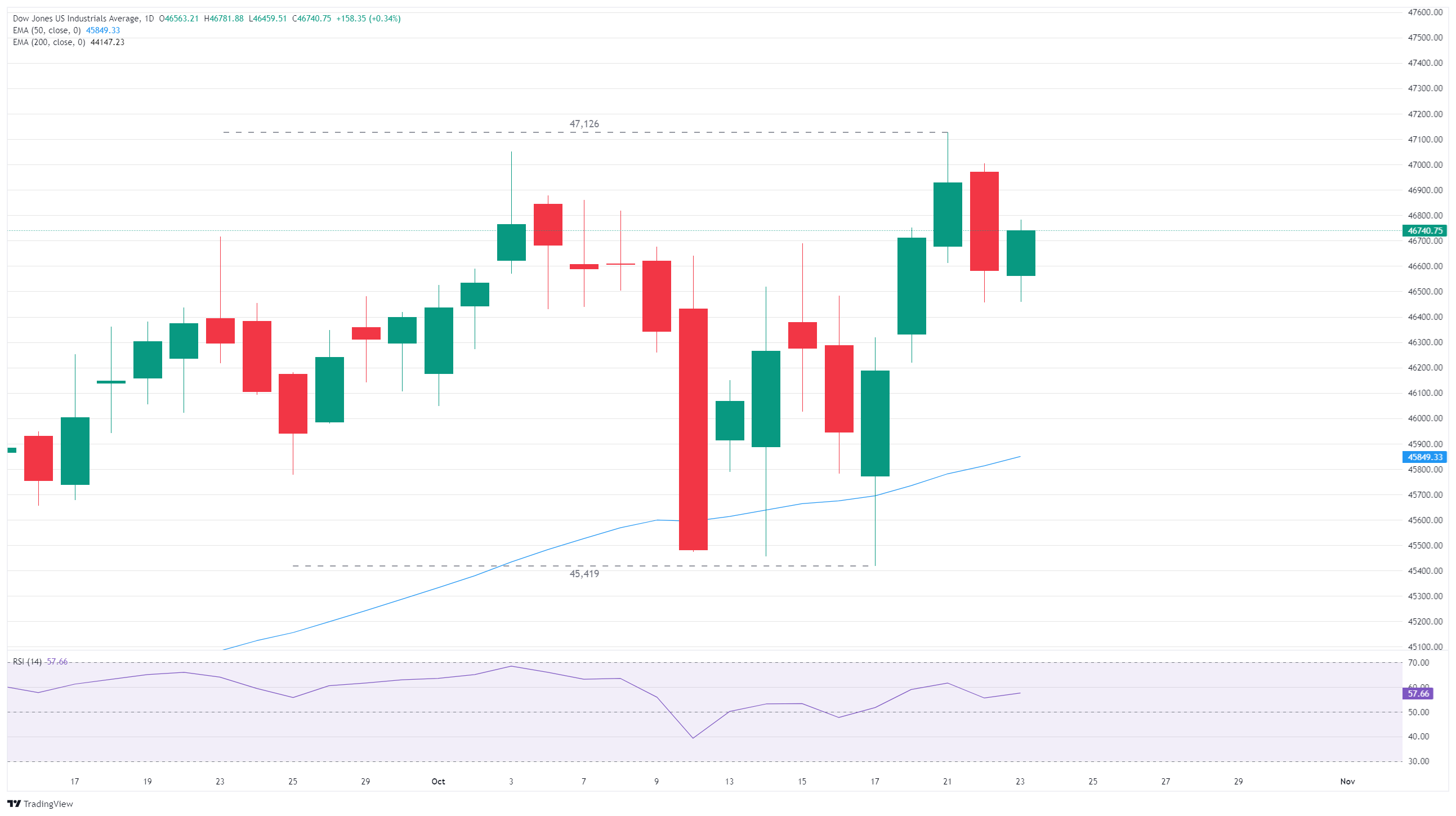 - 道琼斯指数在周四重新回升至46,600点,削减了前一交易日的损失。