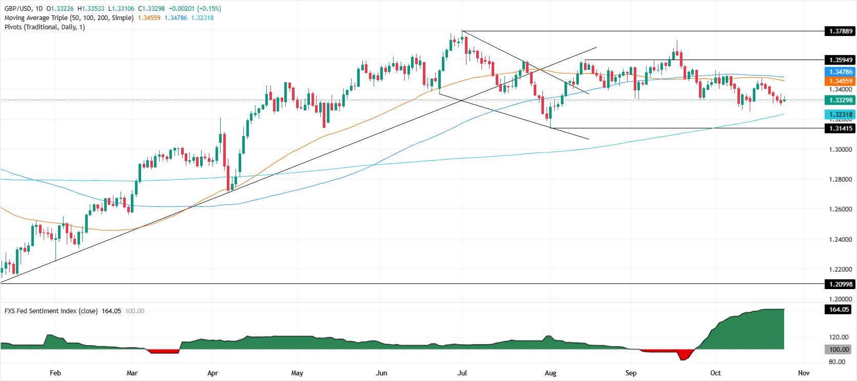 英镑/美元徘徊在1.3320附近,因疲软的美国CPI强化了美联储降息押注