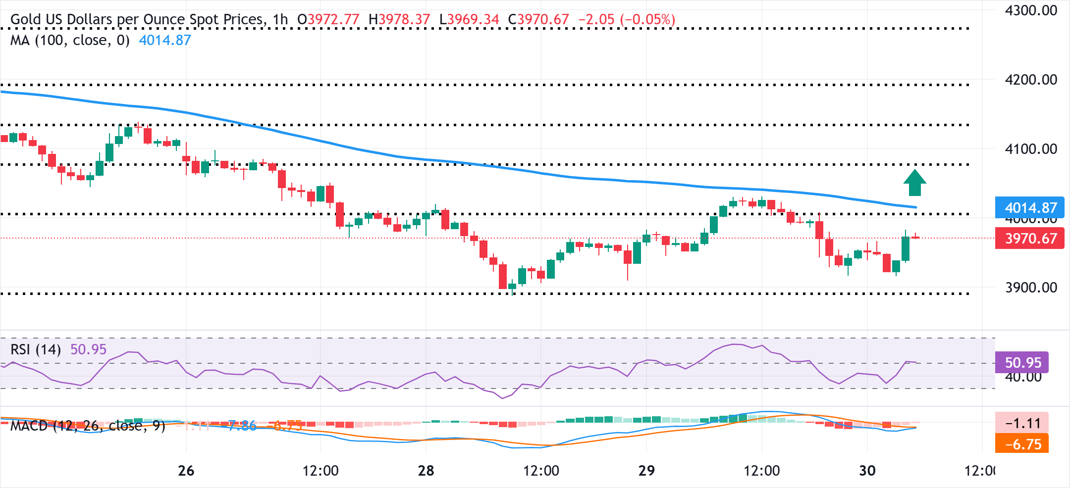 在未能在近期从历史高点回调的23.6%斐波那契回撤位上找到接受度后,随后的下滑有利于看跌交易者。此外,日缐图上的振盪指标刚刚𫔭始获得负动能,表明任何进一步的上涨仍可能被视為在4000美元心理关口附近的卖出机会,或23.6%斐波那契水平。这紧随其后的是100小时简单移动平均缐(SMA),位于40016美元附近,突破后黄金价格可能攀升至4058-4060美元的阻力位,进而达到4075美元区域(38.2%斐波那契水平)和4100美元关口。