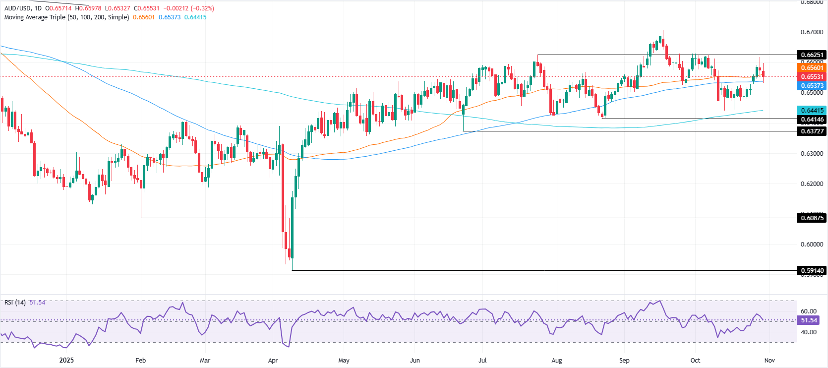 澳元/美元在周四交易结束时下跌0.31%,跌破0.6600,之前在两天前的高通胀报告后触及0.6617的两周高点,该报告增加了澳大利亚储备银行(RBA)可能维持利率不变的机会。撰写时,该货币对在周五亚洲时段𫔭始时交易于0.6552。