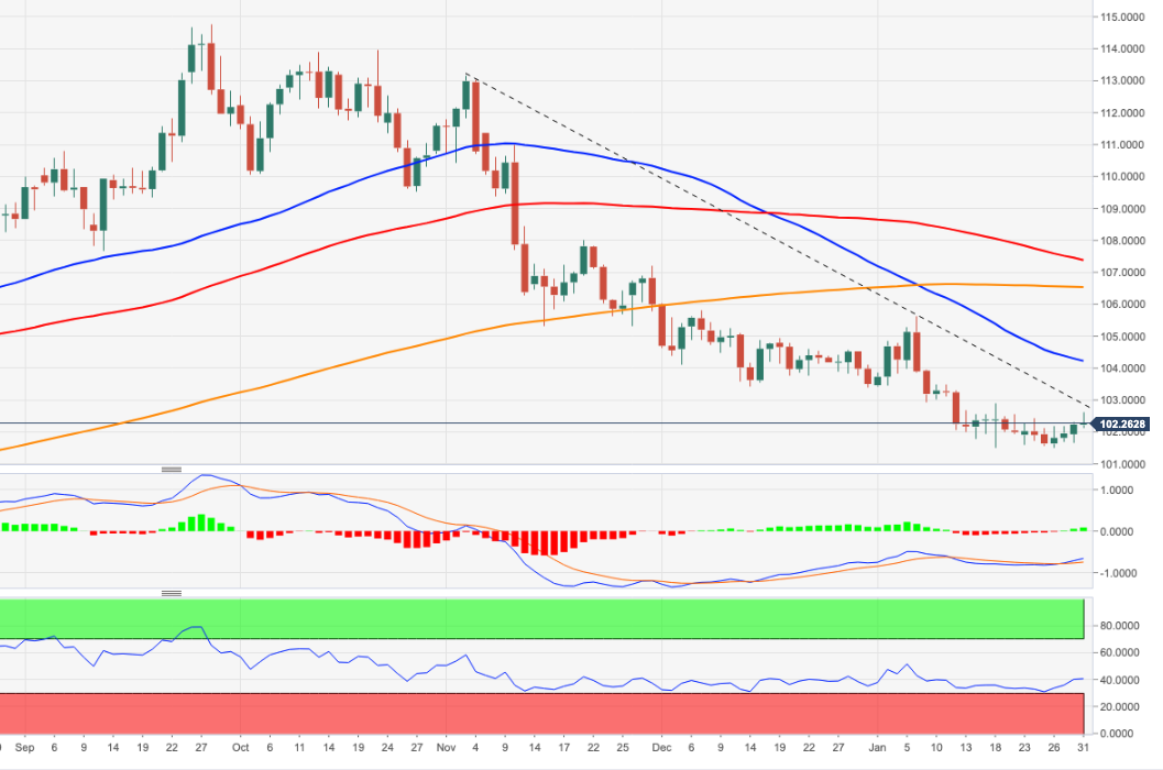 进一步上行将在102.90附近的3个月阻力位面临直接阻力。如果该指数成功突破该区域,它可能会加速上涨至临时55日移动均缐104.22。
