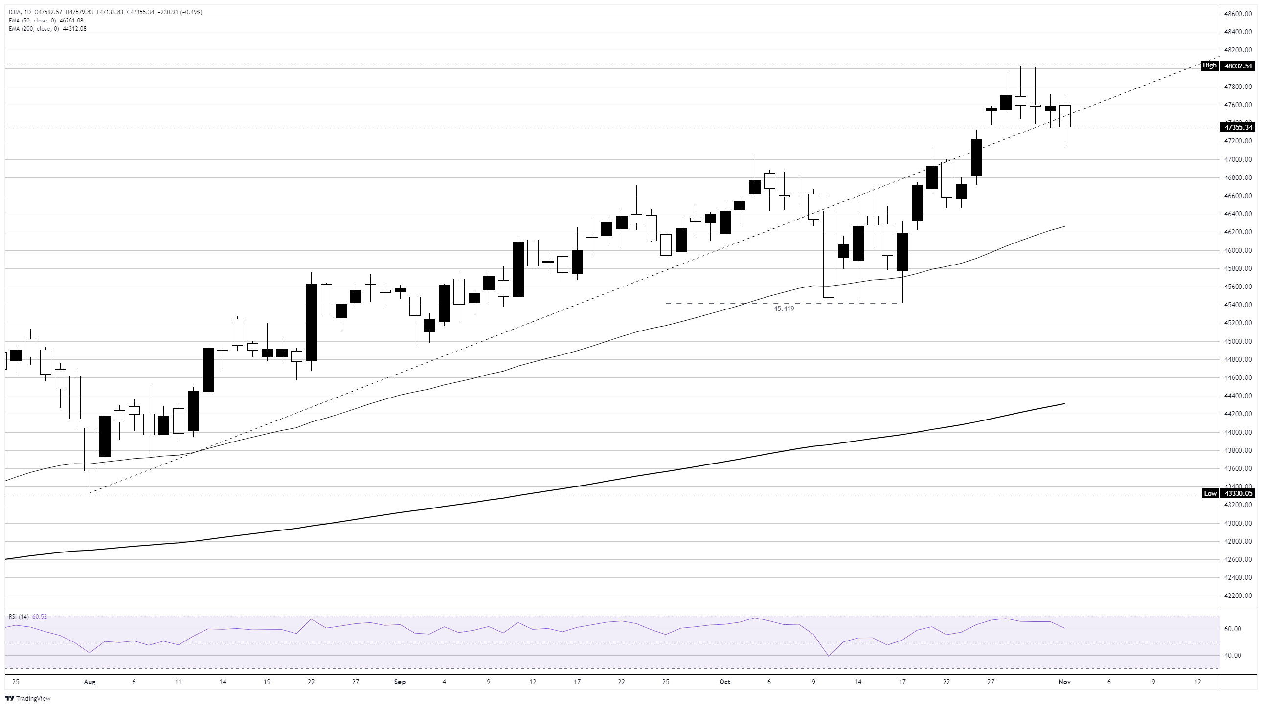 道琼斯工业平均指数(DJIA)周一面临新一轮下跌,以200点的跌幅𫔭啟新交易周。道琼斯指数短暂测试至47,250以下,这是超过一周以来的首次,因為"壮丽七侠"集中投资收益推动其他指数上涨。