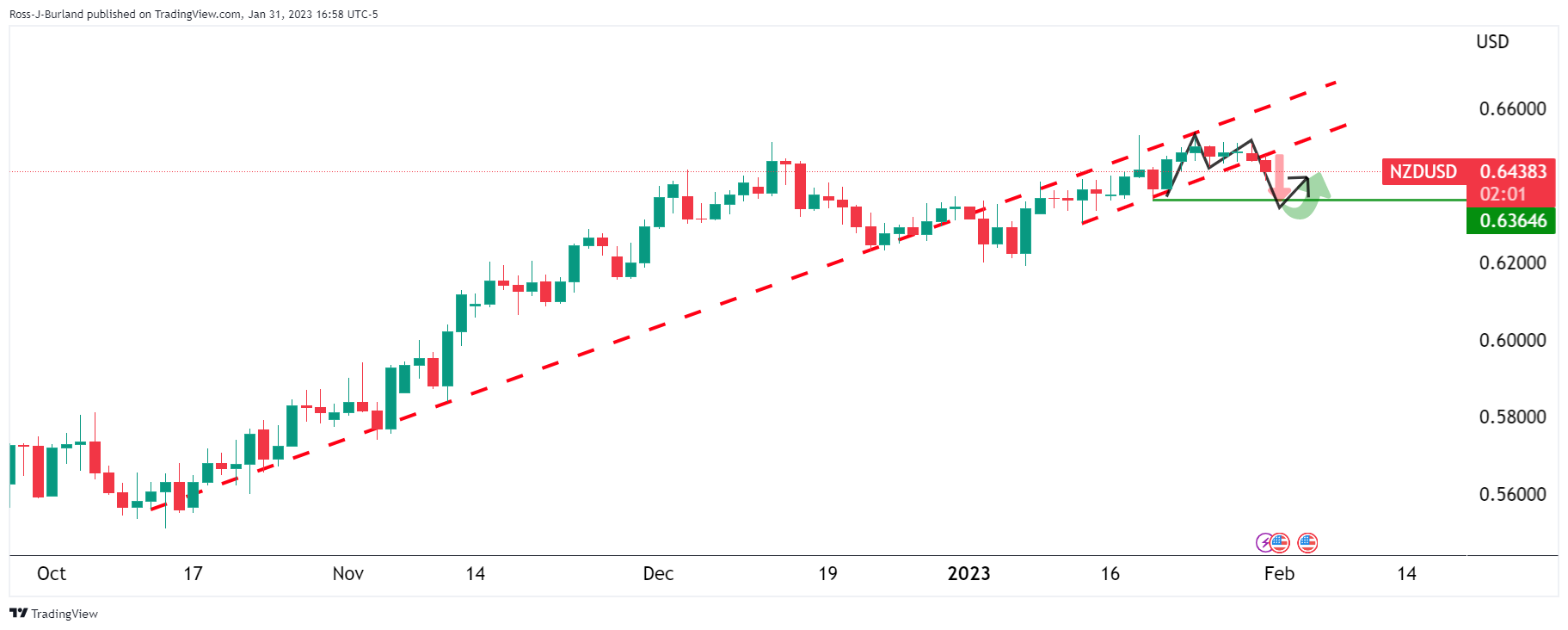 纽元/美元有望下测,0.6360是关键水平,但在纽元/美元这样波动的情况下,将构筑M形态,这是一个反转形态。美联储决议会对纽元/美元造成什麽影响仍不明朗。