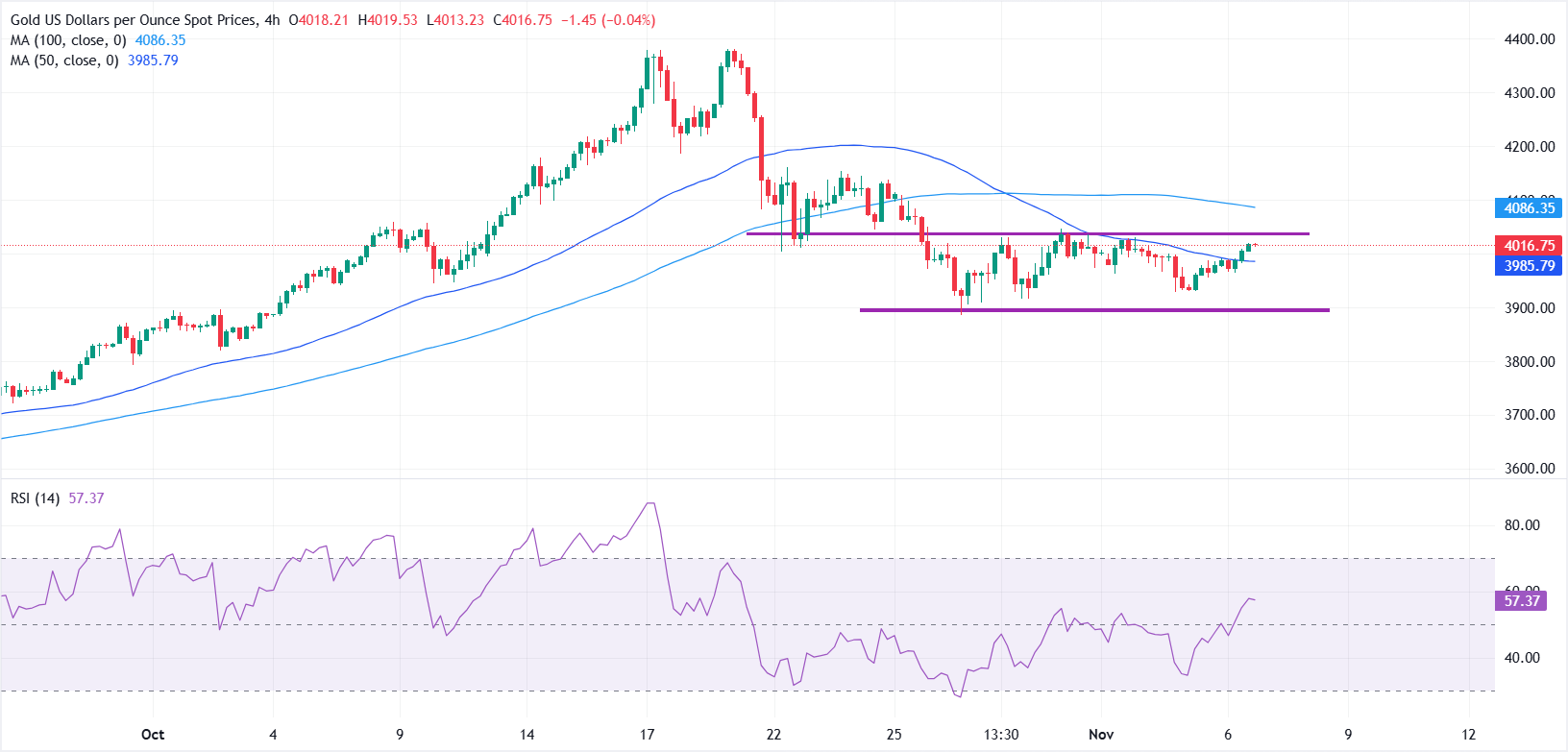 技术分析:XAU/USD在4000美元上方持稳,关注关键的4050美元阻力位