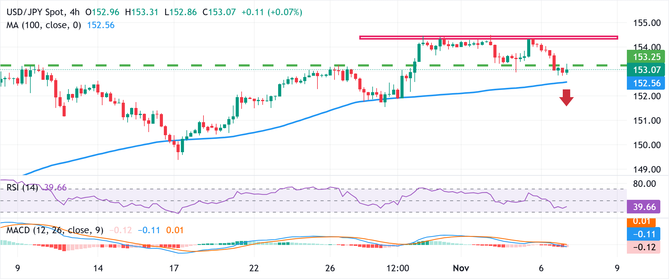 美元/日圆可能难以利用突破154.00的机会;在154.45以下似乎脆弱