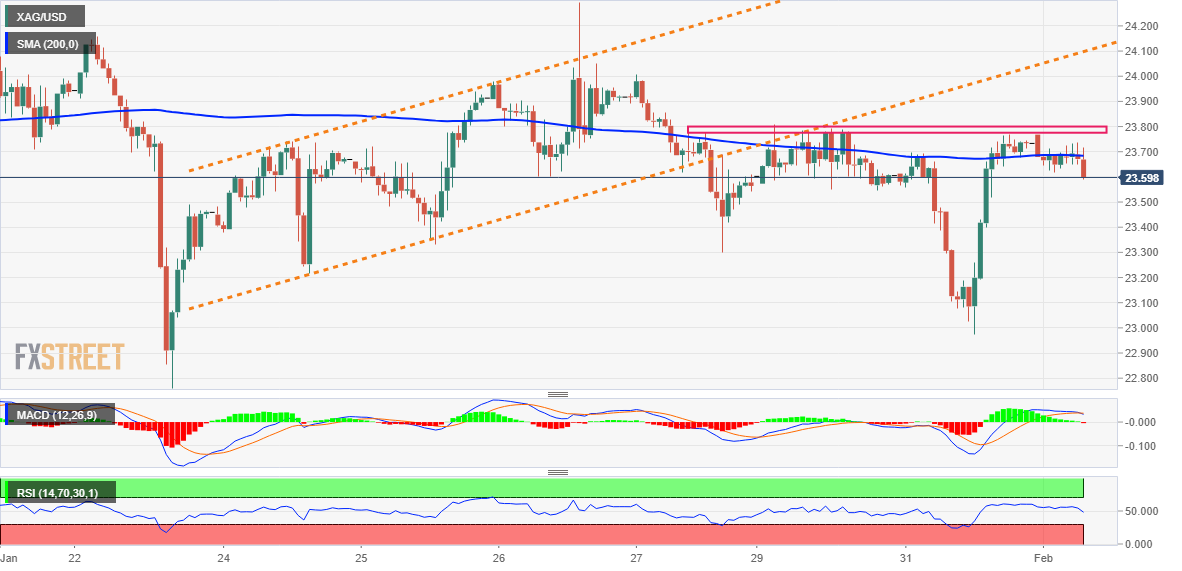 银价分析:白银/美元在200小时SMA附近盘整,略高于23.50美元