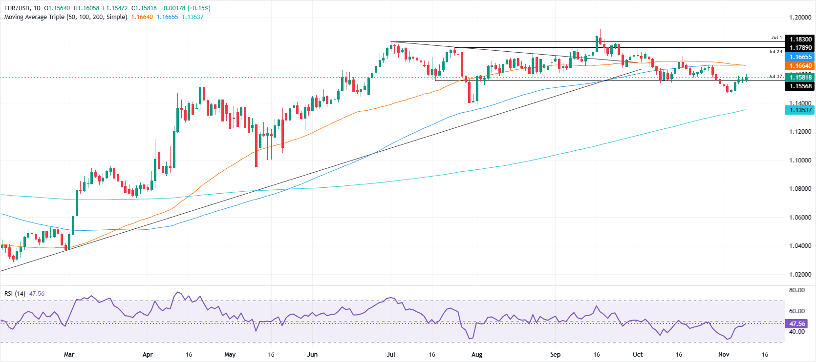 - 货币政策分歧支持欧元进一步上涨,因為预计欧洲央行(ECB)将在2027年前保持利率不变。相反,美联储预计将继续其宽鬆周期,交易员预计到2026年底将降息125个基点。