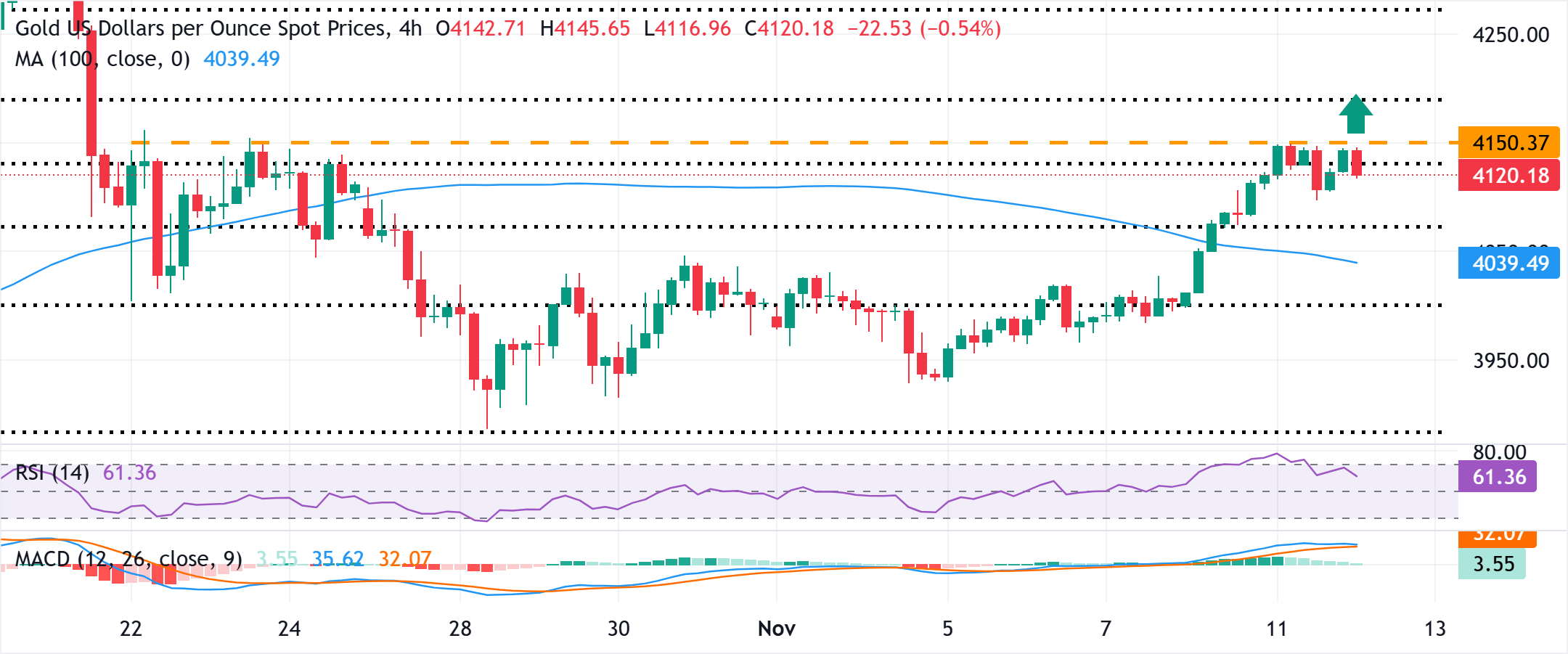 黄金再次在4100美元关键支撑位下方显示出一定的韧性