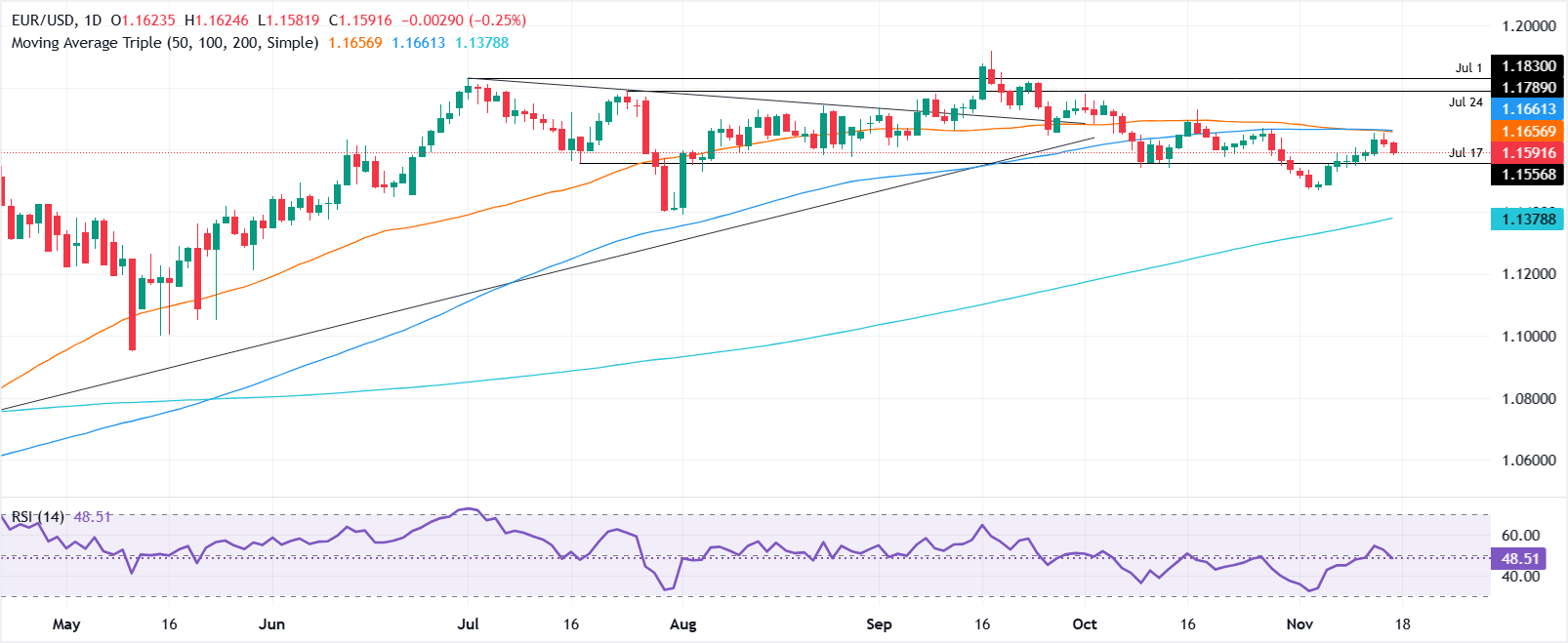 欧元/美元技术展望:跌破1.1600,交易者关注1.1550