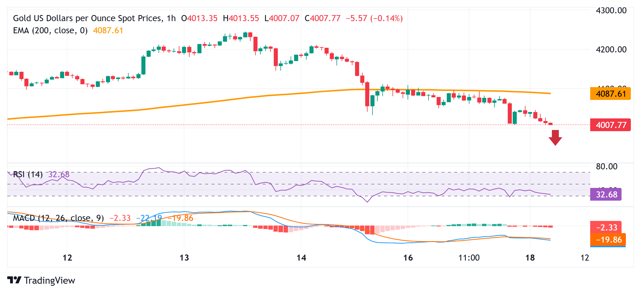 黄金(黄金/美元)在4000美元心理关口下方显示出一定的韧性,并从一个半星期低点小幅反弹,该低点是在周二早盘欧洲时段触及的。侭管美联储(Fed)预期不再那麽鸽派,但由于美国政府历史上最长的停摆导致经济动能减弱,美元(USD)在前一天的涨幅上难以继续走高。这一因素,加上普遍疲软的风险情绪,成為支撑避险贵金属的重要因素。