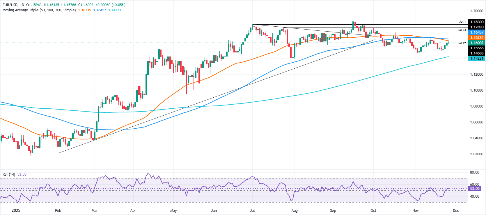 技术展望:欧元/美元在1.1600附近低迷,等待催化剂