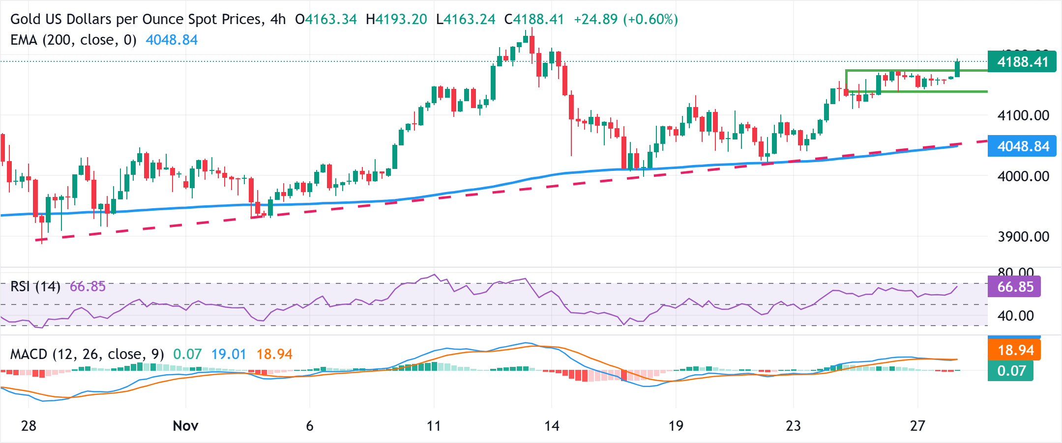 然而,任何有意义的美元升值似乎都难以实现,因為市场越来越接受美联储将在12月再次降息。这反过来可能為无收益的黄金提供顺风,等待一些后续抛售再确认黄金是否已经见顶是明智的。侭管如此,XAU/USD货币对似乎有望录得周度涨幅,但多头需要等待突破4200美元关口后再进行新的押注。