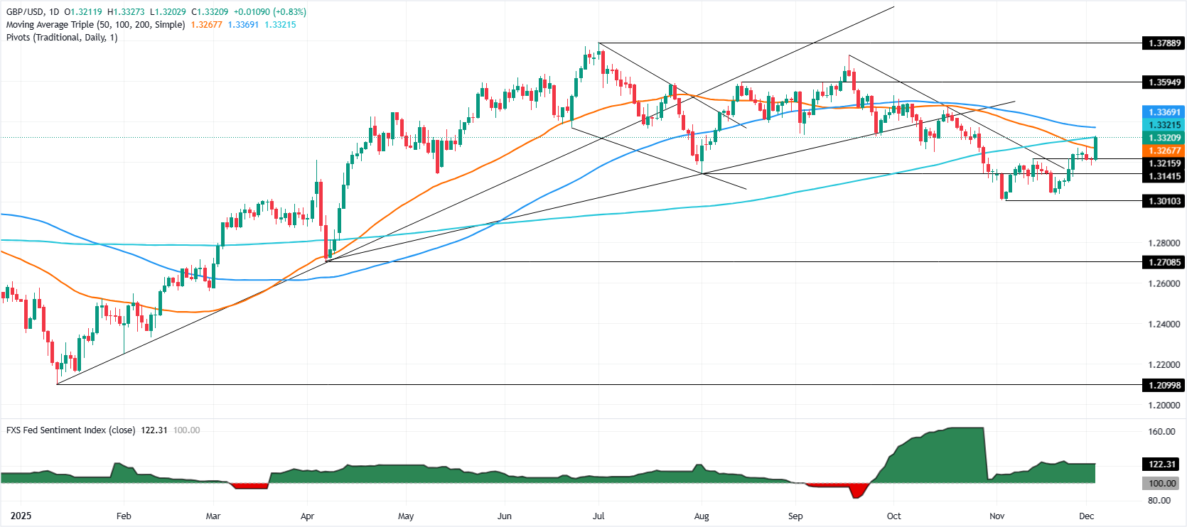 - 英镑/美元跳升至1.3300上方,因特朗普暗示哈塞特可能取代鲍威尔,提升了市场对美联储进一步宽鬆的预期。