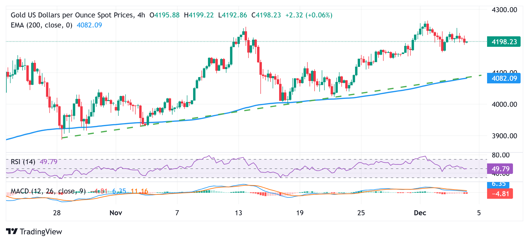 黄金价格仍低于4200美元,缺乏后续走势,交易者静候美国数据