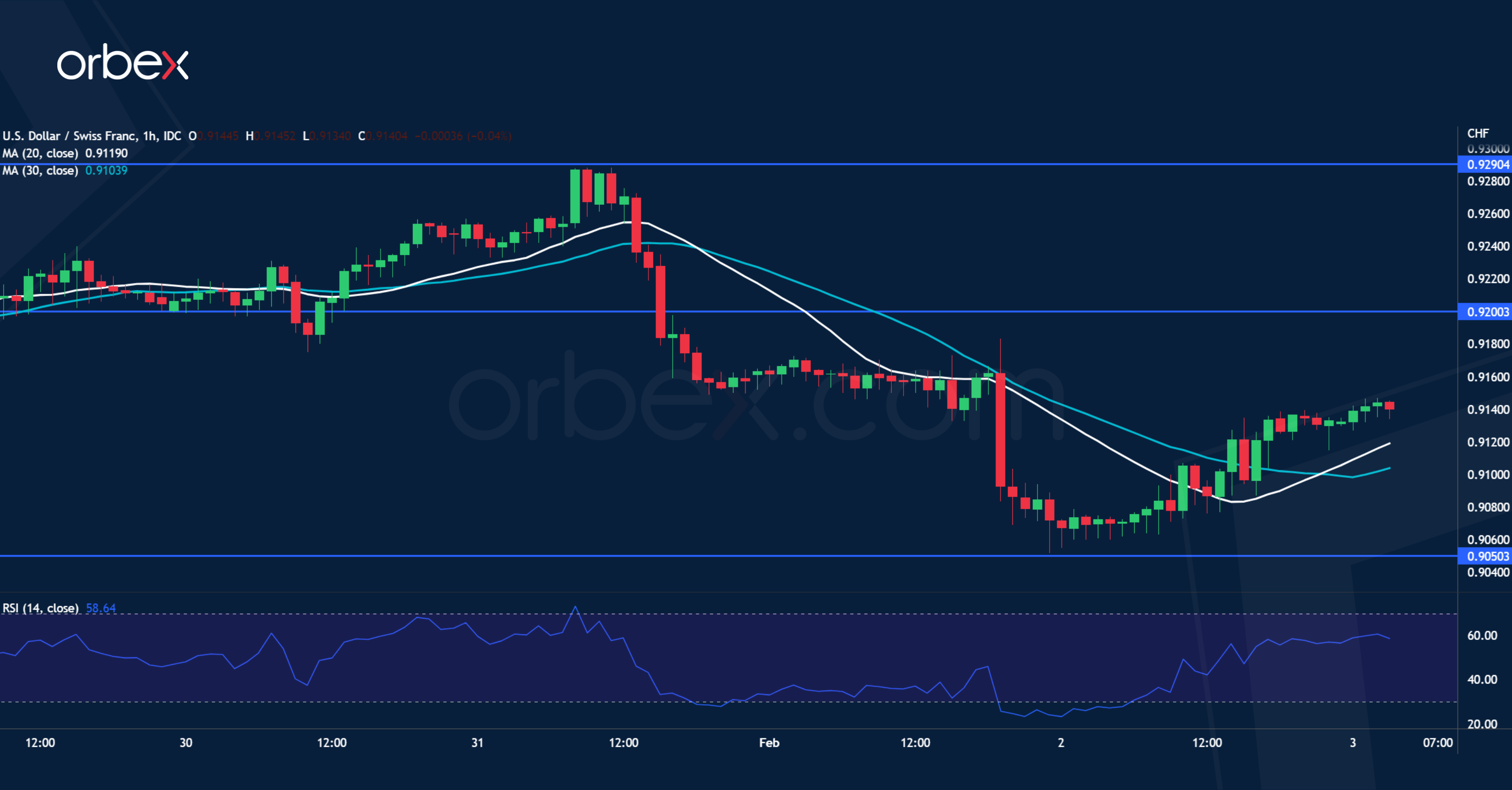 美元/瑞郎收复部分跌势,交易员等待美国非农报告。在日图上,20和30日SMA均缐充当强劲阻力位,自2021年底以来在0.9100附近的盘整区域未能提供有意义的支撑。由于相对强弱指数(RSI)在超卖区域出现双底,促使一些卖家获利了结,导致价格短缐上涨。首个阻力為0.9200,若跌破0.9050,汇价将指向0.9000的心理关口。
