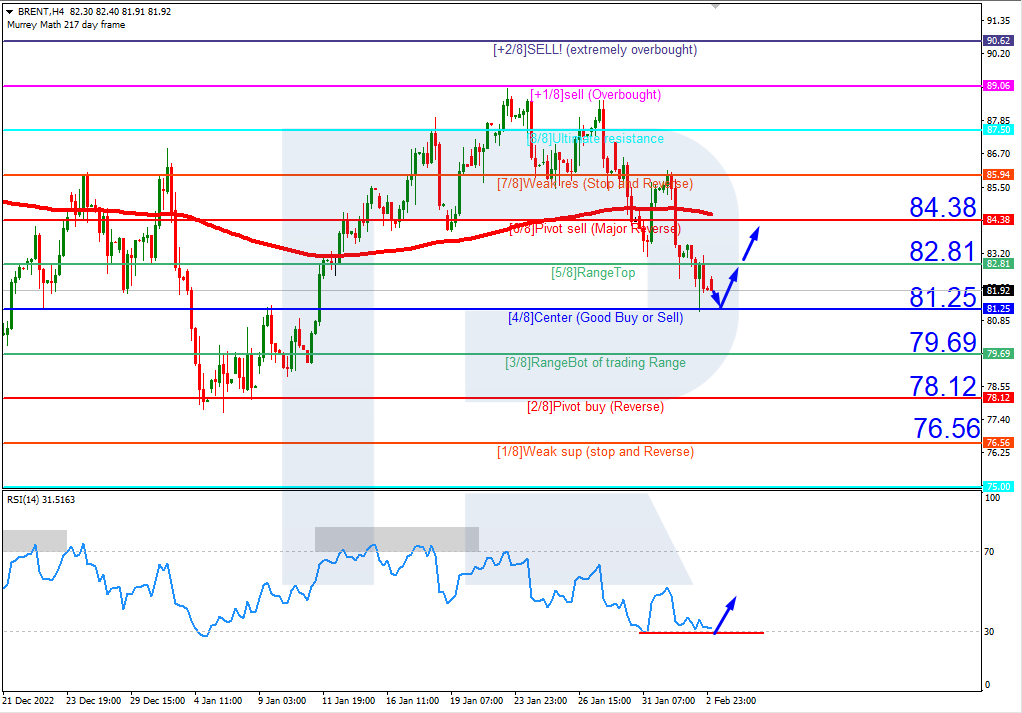 在4小时图上,油价跌穿200日均缐且目前位于其下,表明可能发展為一波跌势。不过相对强弱指标触及超卖区域,暗示调整。因此油价料测试4/8 (81.25),然后自该位反弹并上涨至6/8 (84.38)的阻力水平。若跌破4/8 (81.25)的支撑水平该情形失效。在这种情况下,油价看下跌至2/8 (78.12)。