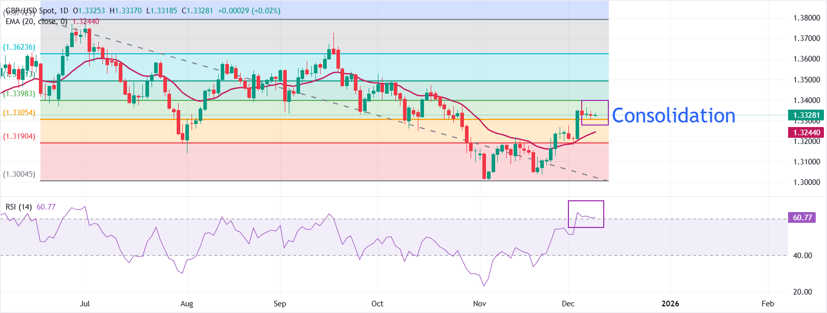 技术分析:英镑保持关键20日EMA